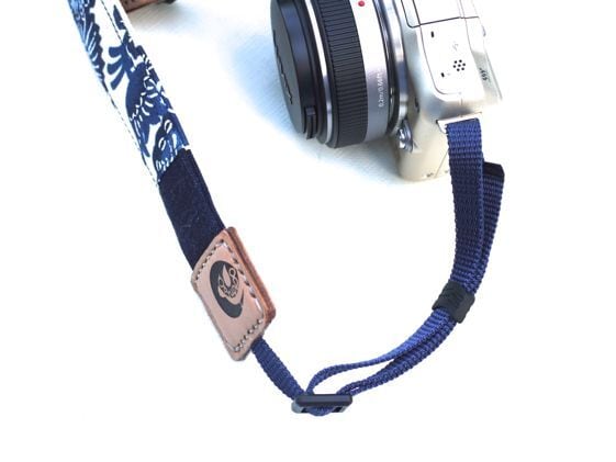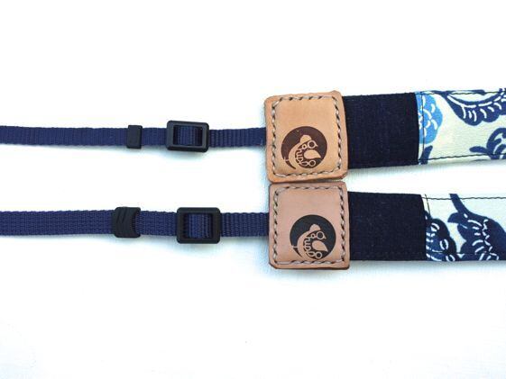 紅型デザインの反物+オックス生地+本革を使い製作したカメラストラップです。